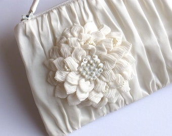 bridal clutch with chiffon flower