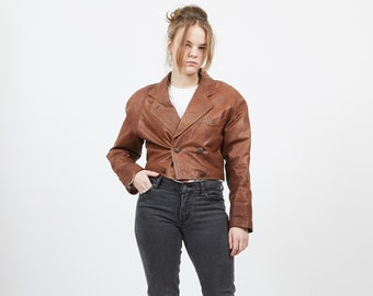 Vintage Women's Stunning Brown GIGI Button Closure Leather Jacket/ Size S