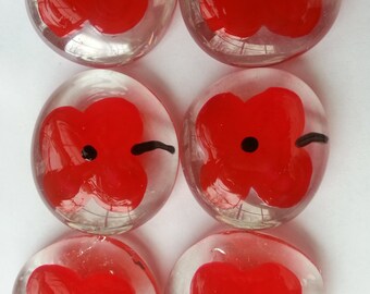 Handpainted large glass gems party favors poppies poppy mini art flowers flower