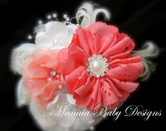 Ivory and Coral Vintage Headband
