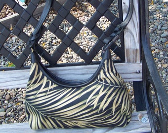 Discontinued FOSSIL cloth handbag Palm fond pattern, Zipper closure, leather strap, inside pockets