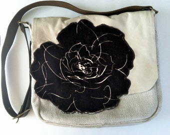 Messenger Bag/ Ivory and Chocolate Velvet