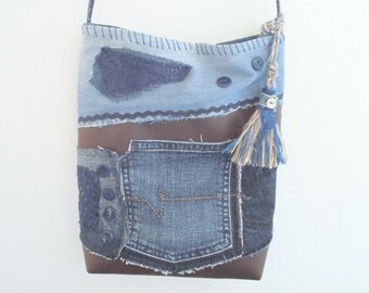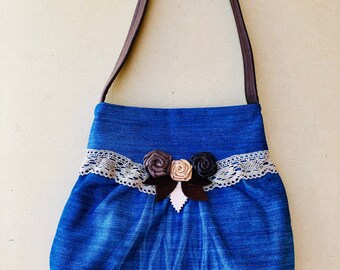 RECYCLING JEANS BAG with long handle / Blue jeans crossbody bag / Shoulder bag