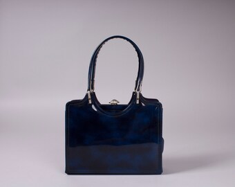 Vintage Kelly Bag // Top Handle // Blue // Marble // Patent // Evening Bag // Gift // Prom // MCM // 50s // 60s