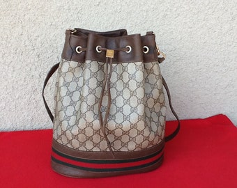 Vintage Gucci Large Bucket Bag Fair Condition Brown Canvas