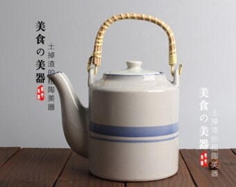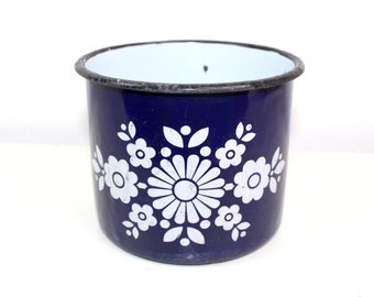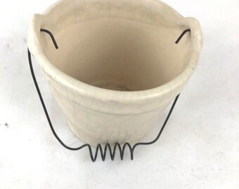 Ceramic Bucket with handle Blue white design floral decorative photo prop