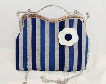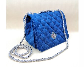Blue denim crossbody purse bag Casual bag Women's bag Chain and leather handle blue handlebag