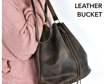 Large Bucket Bag, Leather Bucket Bag, Leather Drawstring, Leather Bag, Leather Crossbody, Black Leather, Brown Leather, Natural Leather