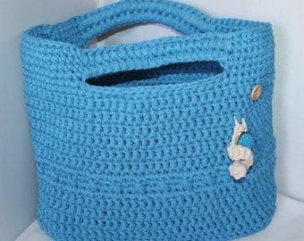 Crochet Bag, Crocheted Bag, Shopper, Short Handle, Blue