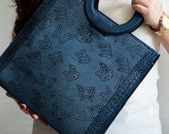Blue handbag, Leather Purse, Tote bag, Handbag, Top Handle Bag, Leather Handbag, Tote, Leather Tote Bag
