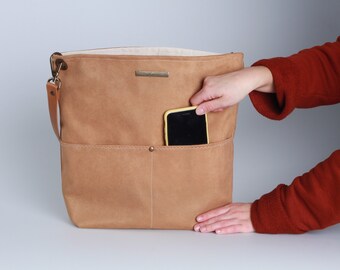 Camel Canvas Tote Bag, Bucket Bag, camel Bag, shopping bag, Casual Tote Bag, Handbag, dark beige bag, camel bucket bag, Lagut, Weekend Bag