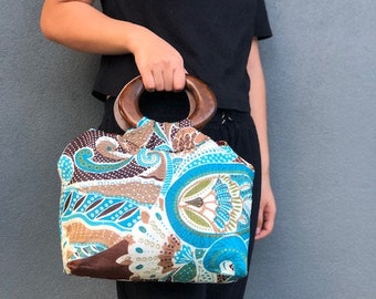 Indigo dye Ikat cotton clutch bag, top handle bag, Indigo dye cotton material handbag for women, Fashion handbag, a unique gift for lady