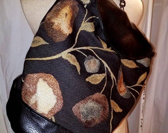 Large Bucket Bag Flex Frame Backpack Black Upholstery Large Florals Faux Leather Adjustable Straps
