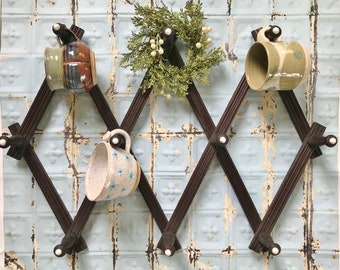 Vintage Wood Folding Expandable Accordian Hat Wall Hook Rack