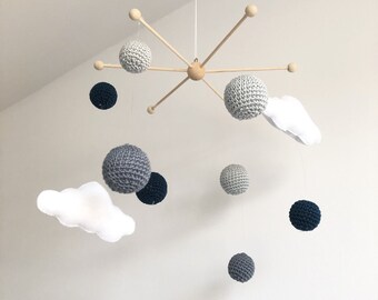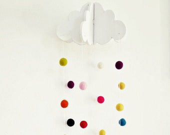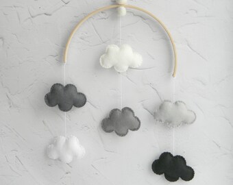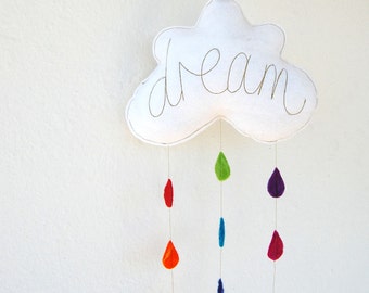 Cloud Nursery Mobile. Black / white felt 'dream' cloud, adorable wall decor for babies or kids bedroom.