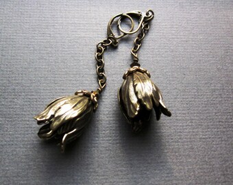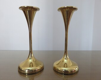 Vintage Taper Candle Holder Set Brass Tulip Figural Metal Flowers Retro