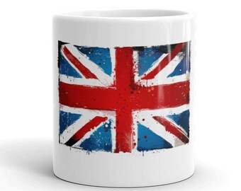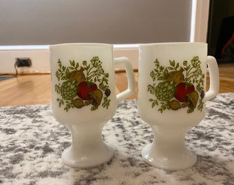 Vintage Coffee Mug Set British English Flag Union Jack England Federal Milk Glass