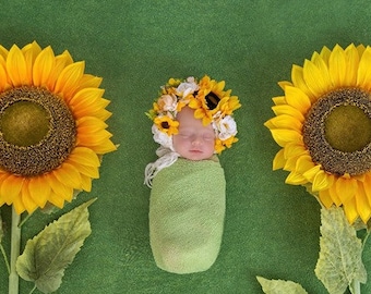 Sunflower Bonnet Baby Bonnet Sunflower Photo Prop RTS Ready to Ship Photoprop 9-12 months Fall Bonnet Hat