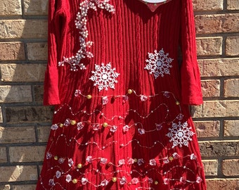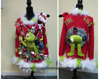 Please choose from these available pre-made sweaters, scroll to the right of the main image to see your size and color options. They are numbered and the circle letter sticker is the size. Just use the scroll down option at check out to see what's available. These are all one of a kind original sweaters so no two are a like. They are pre-made in the specific size shown on each image and they are ready to ship! If the number you want isn't an option on the pull down field at checkout then it's sold out. Yes we make custom sweaters if the one you want isn't available.