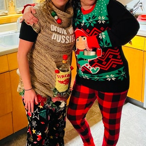 Check out our affiliate Etsy site http://www.berkleysbiz.etsy.com for more wine holder, vintage and kids, amazing Ugly Christmas sweaters.