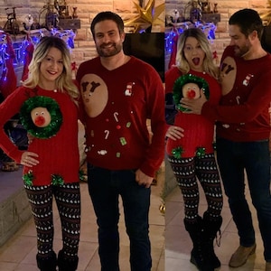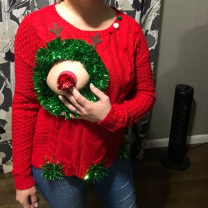 Ugly Christmas Sweater, Multi size, Version of this, reindeer boob, Mens, Pastie, Rudolf, Sexy, Reindeer, chest, red, green, m, l, xl, 2XL