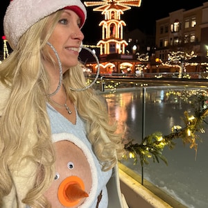 You will receive one reindeer boob sweater and the reindeer eyes and antlers come with it. A one time use of double sided adhesive (made for sensitive skin) is included on the eyes and antlers. All you have to do is peel it off, stick the reindeer on your bare chest and you are ready to ROCK! Remember your nipple is the reindeers nose! The more hair you have on your chest the better, it will make your reindeer look even more furry! The hole in the sweater is pre cut and sewn around to prevent fraying. This sweater can be used again, you'll just need to apply more adhesive to the reindeer antlers and eyes. You can use fashion tape, boob tape, eyelash glue, etc..