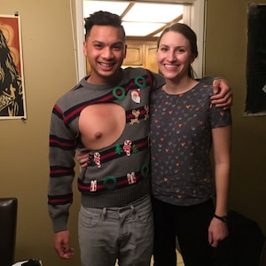 Check out my Women's version! With Sweater: https://www.etsy.com/listing/256397716/sexy-ugly-christmas-sweater-pastie And Without sweater https://www.etsy.com/listing/212613318/ugly-christmas-sweater-pastie-christmas?ref=shop_home_feat_2