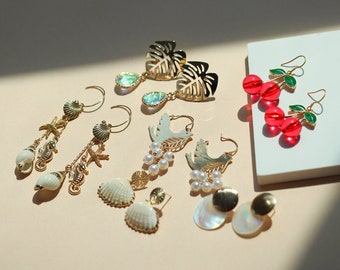 Gold stud earrings for women bird earrings summer earrings conch earrings sea horse earrings gold earrings cherry earrings pearl earrings