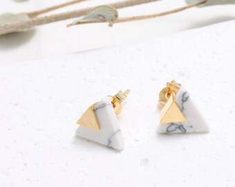 White Howlite Triangle Stud Earrings, Arrow White Marble Stud Earrings