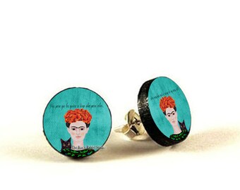 Frida Earrings, Frida Jewelry, Frida stud, decoupage earrings, Hypoallergenic Earrings for Sensitive Ears