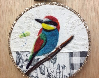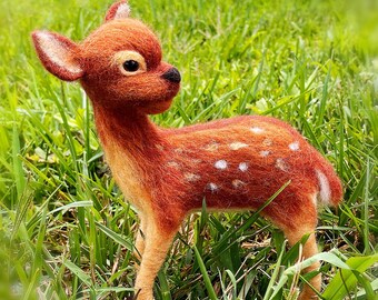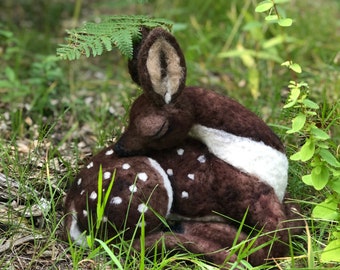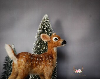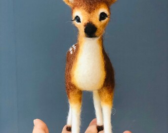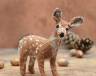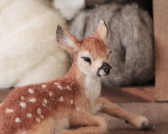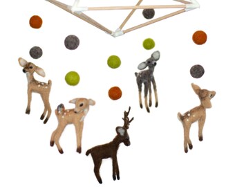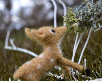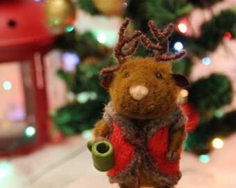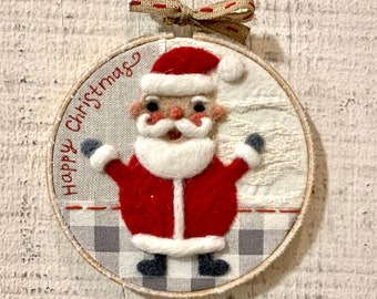 Woodland Deer Needle Felted 5" Embroidery Hoop Art in Willow Wreath Frame with Ribbon by Val's Art Studio