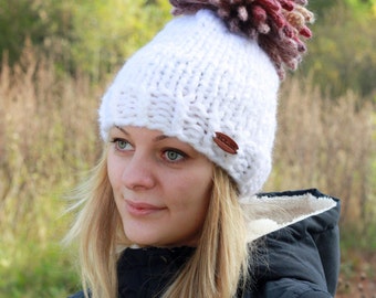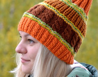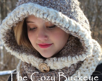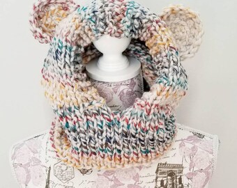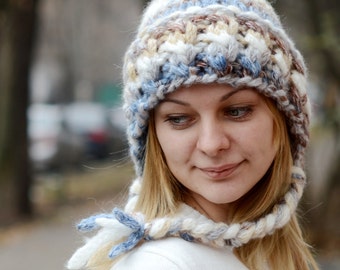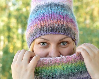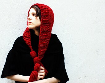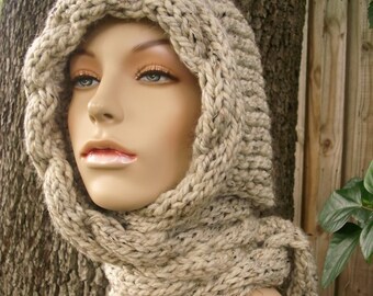 Chunky Knit Hat / Hand Knit Hat-Cowl / Knit Hood Hat / Knitted Women Hat / Knitted Hat / Winter Hat