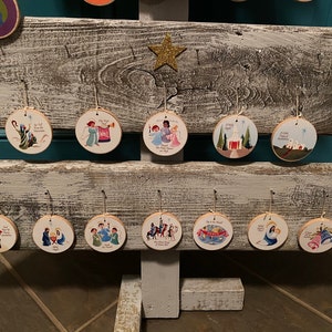 These are really adorable little ornaments! I bought these for my kids to put on the “kid tree,” and to help them learn some Christmas carols. The artwork is beautifully drawn, printed and adhered to the wood discs, and they are a nice size for little hands. Thank you for the fast shipping and the wonderful Christmas keepsake!