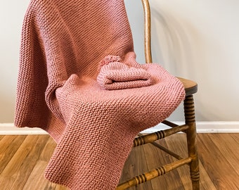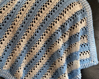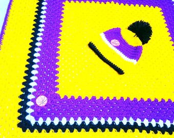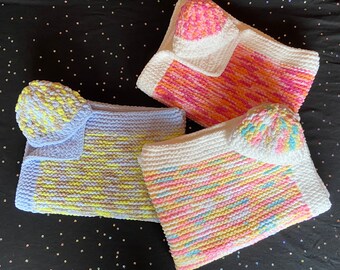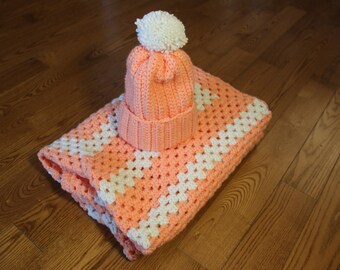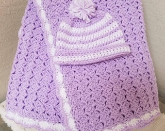 Name-your-colors braided blanket and hat set hand-crocheted for baby