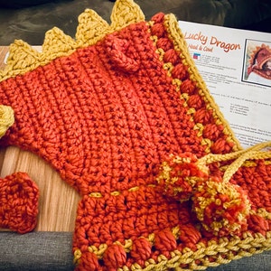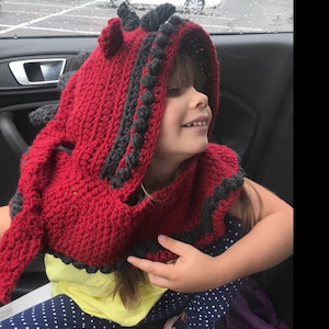 Crochet PATTERN - Lucky Dragon Hood & Cowl - crochet hood pattern, hooded cowl hat pattern (3 sizes | Toddler Child Adult) - PDF Download