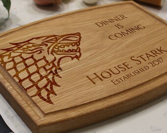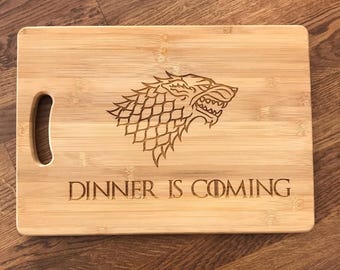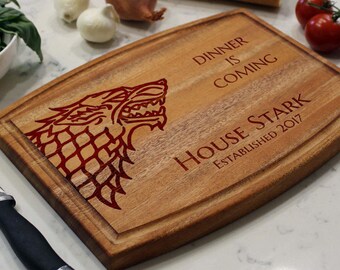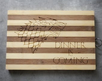 Game of Thrones Cutting Board Dinner is coming House Stark family Custom Engraved Winter is coming Movie gift Kitchen decor -