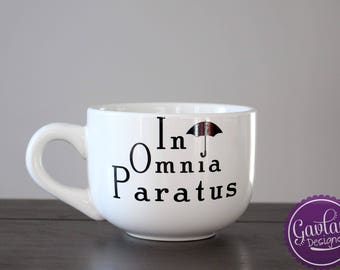 In Omnia Paratus - Large 16 oz Black or White coffee mug - Cappuccino - Inspired by Gilmore Girls - with Umbrella
