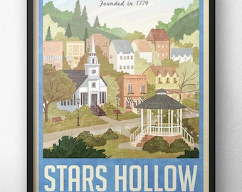 Stars Hollow Poster - Vintage Travel Poster - Inspired by Gilmore Girls (Blue Version)