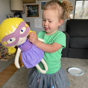 Emese worked with me to come up with a beautiful doll for my daughter's birthday. From working with me to source a new skin color, letting me pick her hairstyle & color, and coming up with a great "wardrobe" for the doll based on a mashup of all the great clothes I'd spotted on her shop, she was an amazing seller. I can't wait until my little one sees what we've gotten her. This will be her third superhero doll from Emese. She loves them so much, and has asked for another, so I know she'll be thrilled!