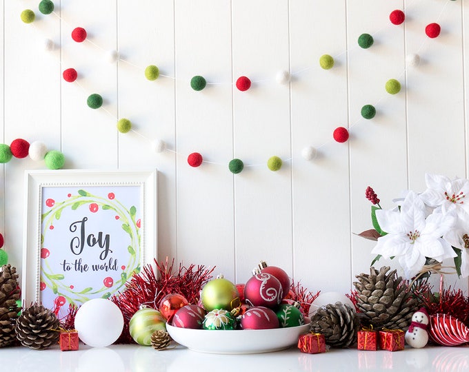 Traditional Christmas Felt Ball Garland - Red and Green Christmas Garland - Mantel Garland - Christmas tree decor