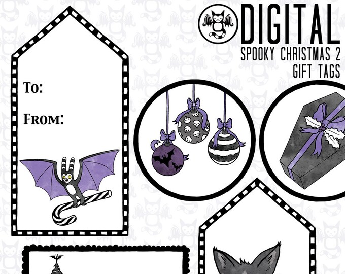 Spooky Christmas 2 Goth Gift Tag Stickers -Instant Digital Download graphics for your personal use - printable sheets and separate images