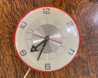 Vintage GE Kitchen Wall Clock General Electric Plastic Octagon Flower Floral