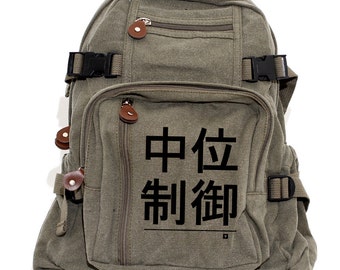 This backpack is hand flocked in the Medium Control studio! Flock is a printing method that results in a velvety textured graphic. This small backpack is made of a comfortable lightweight cotton canvas. It has a large volume main compartment, three front zippered compartments, plus two side pockets with elastic and tie-down straps. This backpack is small but will easily fit your ipad, books, and other daily necessities. It will easily become your favorite daily backpack!!