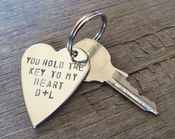 You Hold the Key to my Heart Keychain Deployment Gift Boyfriend Girlfriend Gift Set Jewelry for Her Handstamped Best Friend Keyring Sisters