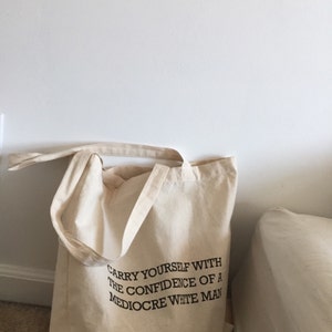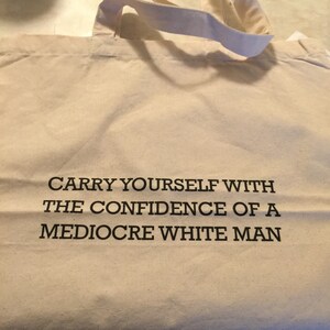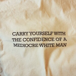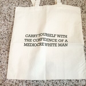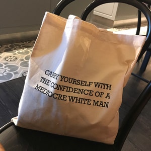 "CARRY YOURSELF WITH THE CONFIDENCE OF A MEDIOCRE WHITE MAN" tote!