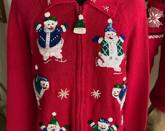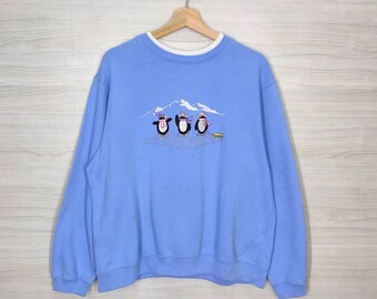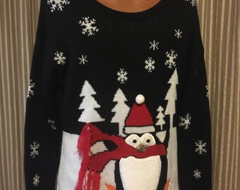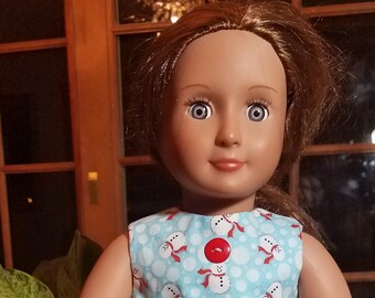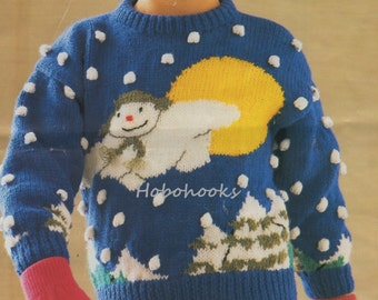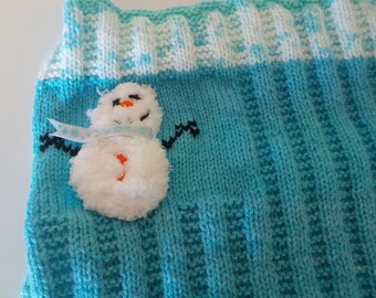 Blue hand knitted childrens Christmas winter holiday sweater / jumper with snowman motif picture for girls boys, original design OOAK
