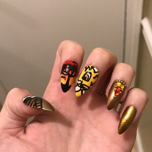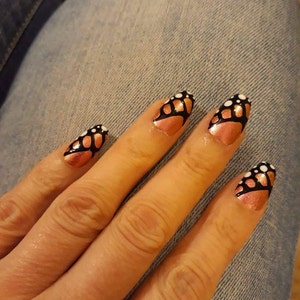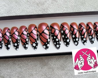 Butterfly Wings Hand Painted Pink | Gold | Orange False Nails | Little Nail Designs