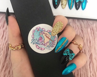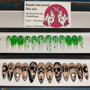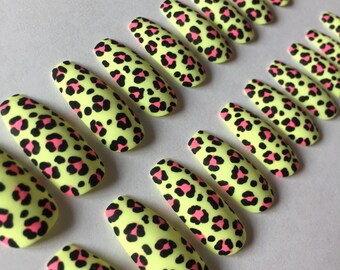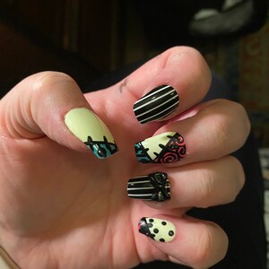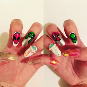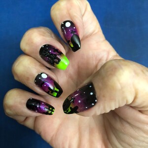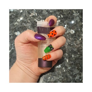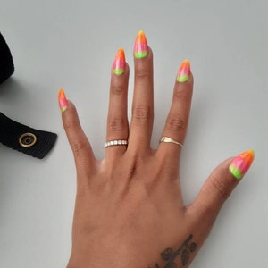 Hand Painted Neon Glitter Cute False Nails | Little Nail Designs
