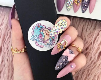 Nails don't come with glue but can be purchased separately in my shop, or most drug stores. I recommend using sticky nail tabs for kids nails.