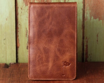 Personalized Handmade Leather Golf Scorecard Holder / Yardage Book in Vintage Bourbon